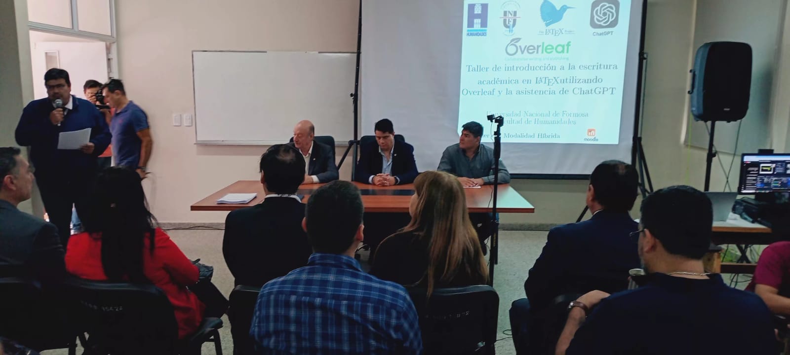 En el Auditorio de la Facultad de Administración, Economía y Negocios, en la tarde de este viernes 7 de noviembre, se llevó a cabo la puesta en marcha del taller denominado “Introducción a la escritura académica en LaTex. Utilizando Overleaf y la asistencia de Chat GPT”.