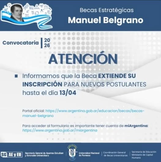 La convocatoria 2026 de las Becas Estratégicas Manuel Belgrano extendió su período de inscripción para nuevos postulantes.