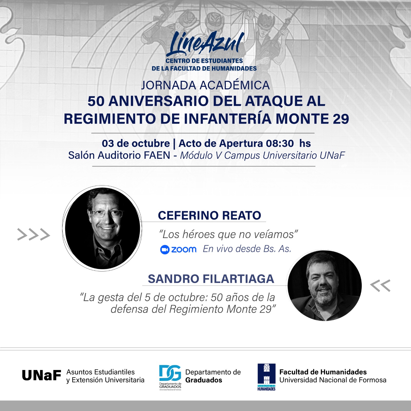 Con motivo de conmemorarse el próximo 5 de octubre el 50º aniversario del ataque al Regimiento de Infantería de Monte 29, en el Salón Auditorio de la FAEN-UNaF se llevará a cabo una jornada académica.